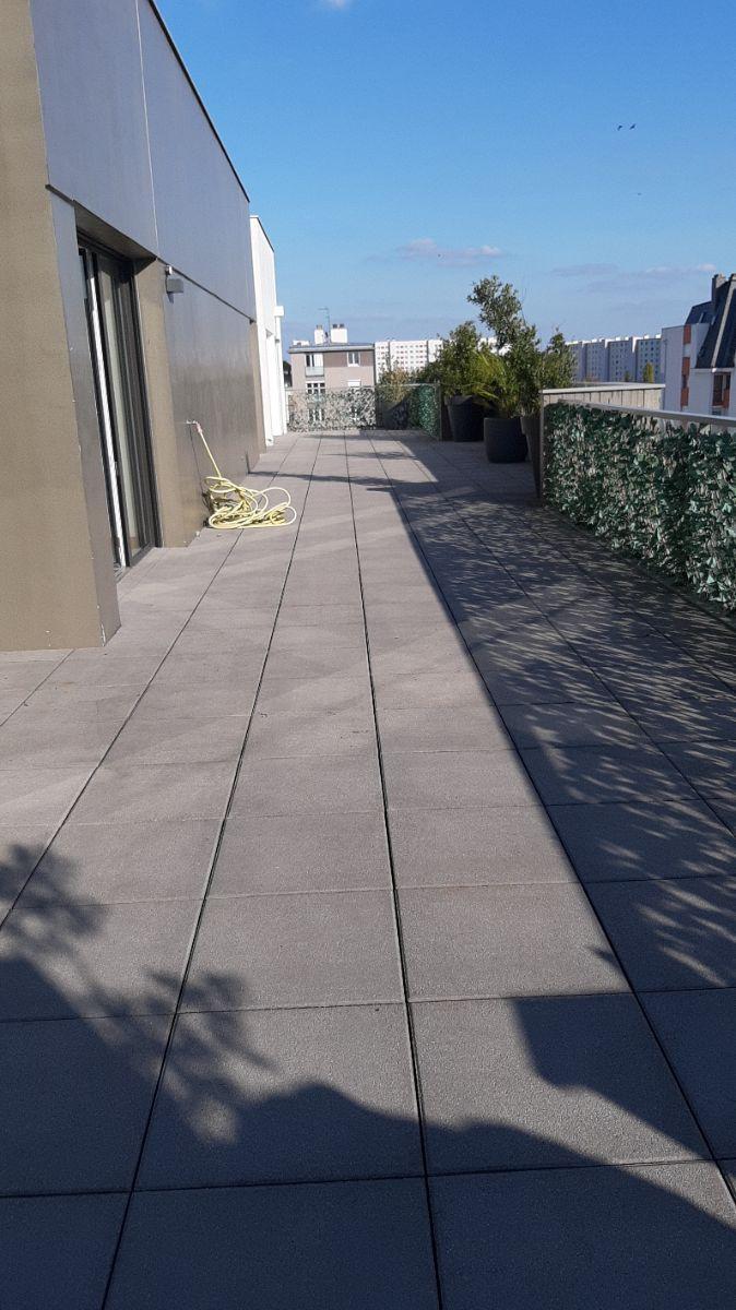 A vendre RENNES appartement T6 avec grande terrasse : Quartier Sainte-Thérèse -Henri-Fréville : Au dernier étage avec grande terrasse, superbe appartement type 6, 159 m² habitables : Entrée avec placards, buanderie, wc avec lave-mains, Pièce à vivre de 63 m² : Cuisine américaine aménagée et équipée avec séjour-salon ouvrant au sud sur une grande terrasse, arrière cuisine, couloir avec placards et sortie de secours (par les parties communes), partie nuit avec couloir desservant, une chambre avec placard ouvrant au sud sur terrasse, une grande chambre avec placard et salle d?eau privative ouvrant au sud sur terrasse, wc, salle de bains, chambre ouvrant à l’est sur loggia et au nord sur terrasse, chambre avec placard ouvrant au nord sur terrasse. Au sous-sol, un garage double avec porte automatique et parking couvert. Terrasse de 106 m² plein sud avec vue dégagée (arrivées en attente pour spa). Climatisation.