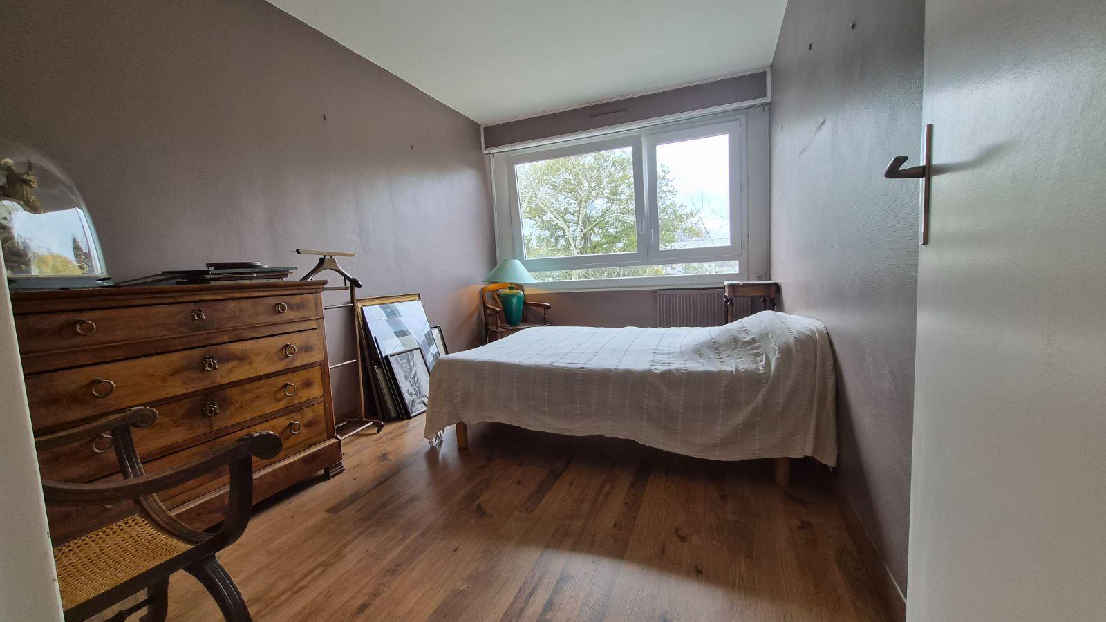 A vendre RENNES appartement type, quartier hôpital sud (métro poterie) : Appartement T3, au 3ème et dernier étage sans ascenseur, 61 m² habitables, comprenant : Hall d’entrée avec placard, wc, cuisine avec meubles bas, hotte, plaque gaz, four, petit lave-vaisselle), séjour 18 m² sur parquet flottant ouvrant à l’ouest sur balcon, dégagement, salle d’eau, rangement et deux chambres ‘9.58 et 11.12 m²) sur parquet flottant à l’ouest. Local à vélos commun, cave et parking couvert.